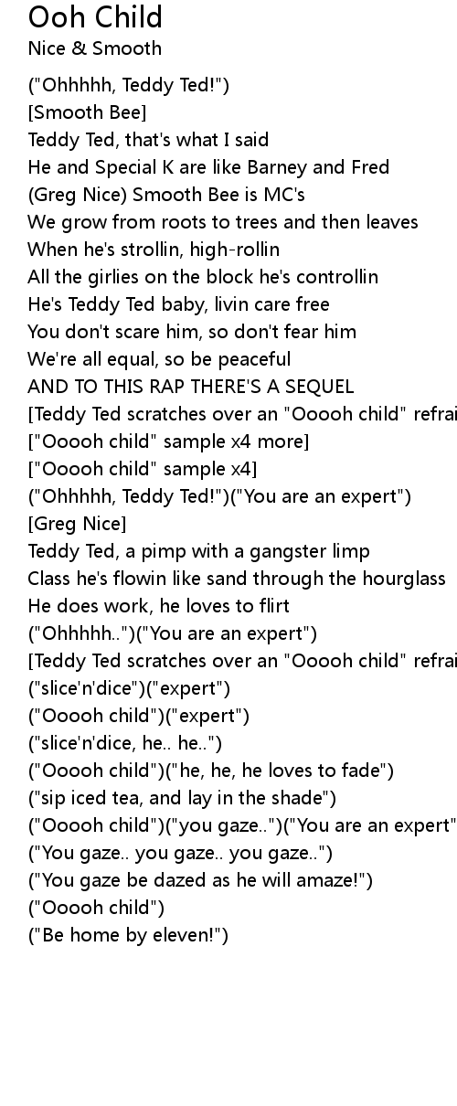 [Teddy Ted scratches over an "Ooooh child" refrain x9] |
