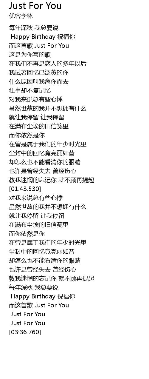 | [03:09.290] | ér zhè shǒu gē Just For You |