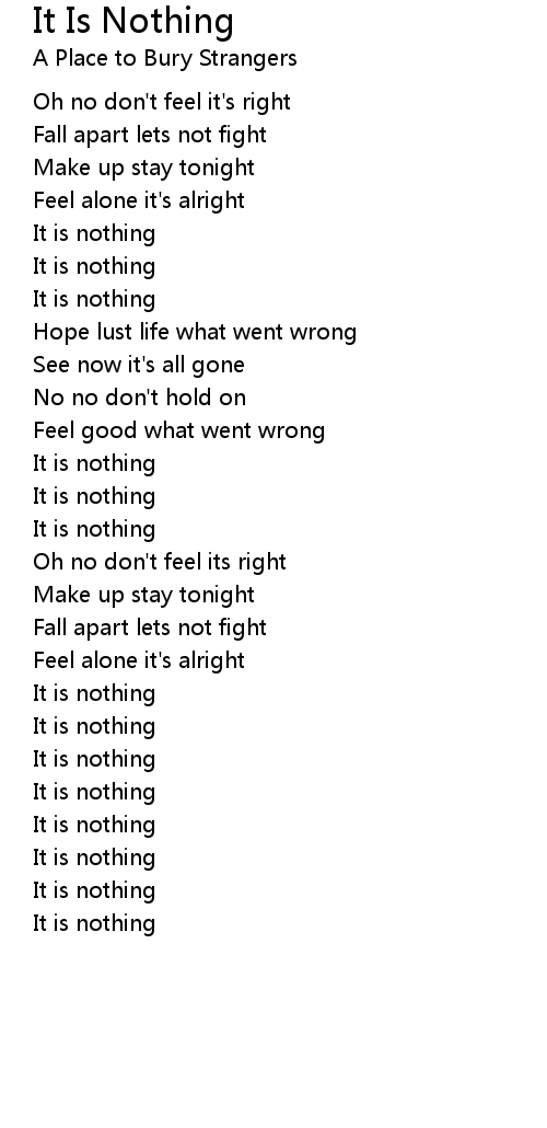 | Song | It Is Nothing |