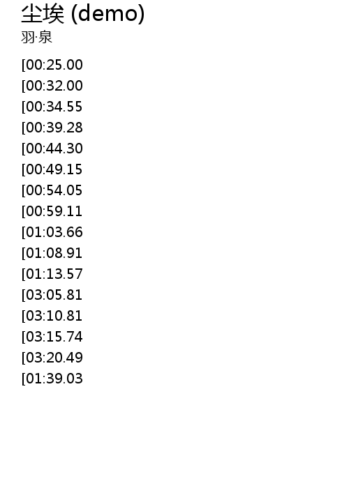 | [01:43.00][00:25.00] | 羽泉 - 尘埃 |