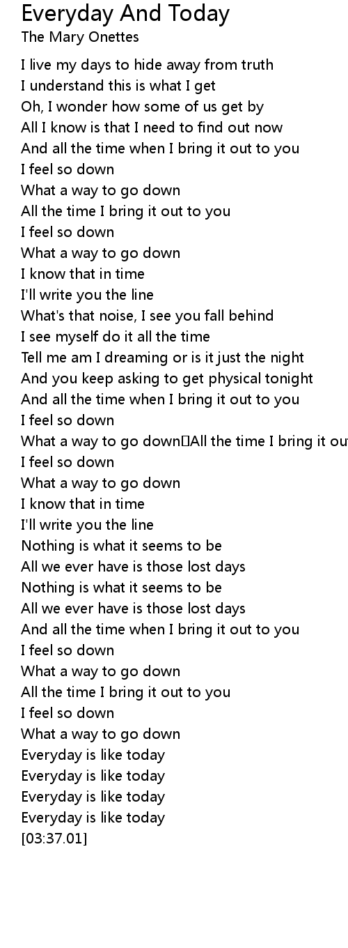 | [03:25.31] | Everyday is like today |