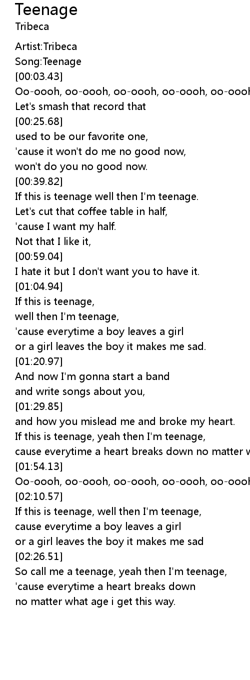 | [00:41.36] | If this is teenage well then I'm teenage. |