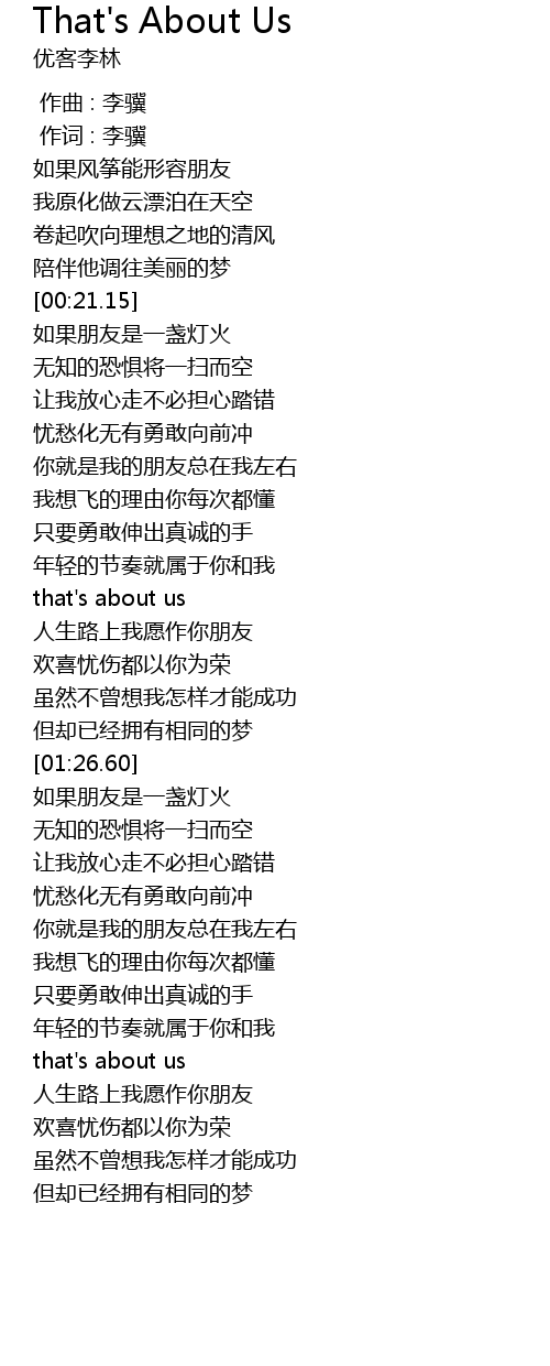 | [01:21.15] | dàn què yǐ jīng yōng yǒu xiāng tóng de mèng |
