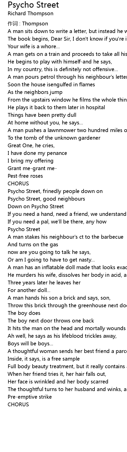 | Psycho Street, good neighbours | |