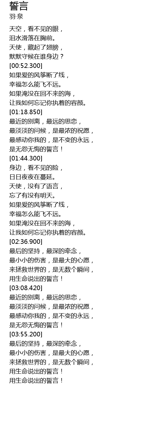 | [01:39.130] | shì wú yuàn wú huǐ de shì yán! |
