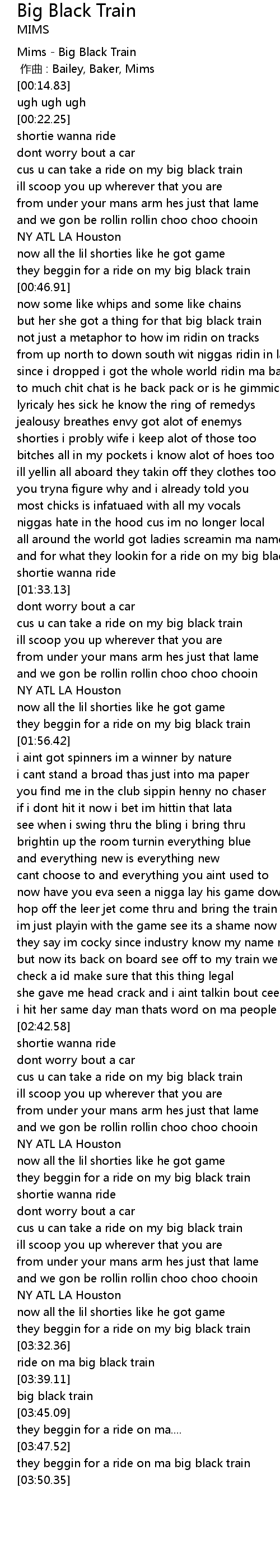 | [03:49.41] | they beggin for a ride on ma big black train |