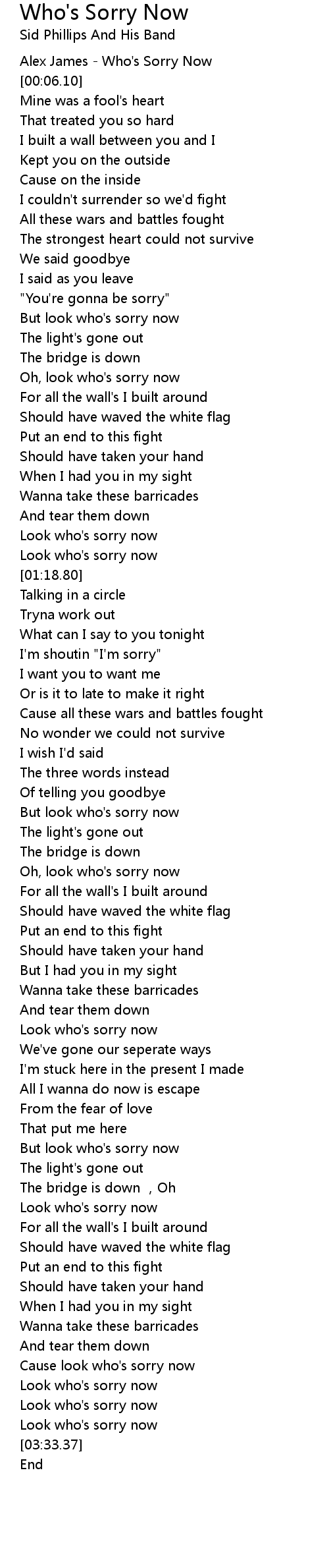 | [03:16.66] | Cause look who's sorry now |