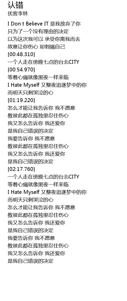 | [03:07.350] | I Hate Myself you zheng ye zhui zhu meng zhong de ni |