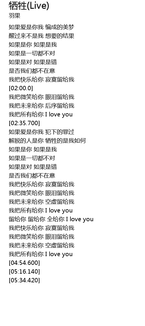 | [03:59.600] | 留给你 留给你 全给你 I love you |