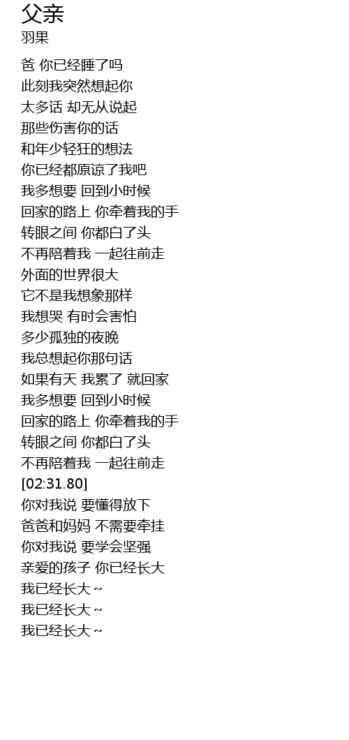 | [03:02.62] | 亲爱的孩子 你已经长大 |