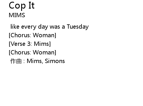 | [00:00.00] | 作曲 : Mims, Simons |
