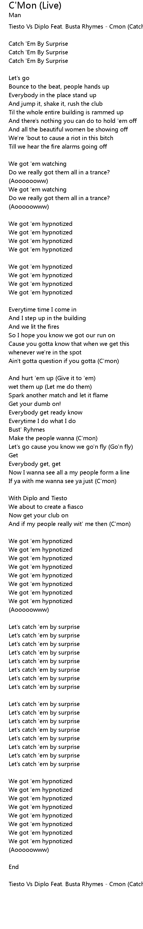 Tiesto Vs Diplo Feat. Busta Rhymes - Cmon (Catch Em By Surprise) |