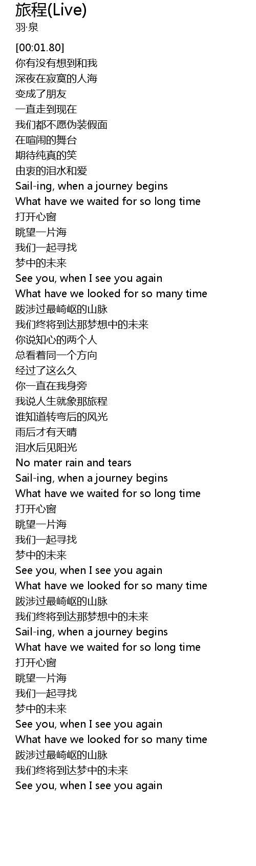 | [02:16.22] | Sailing, when a journey begins |
