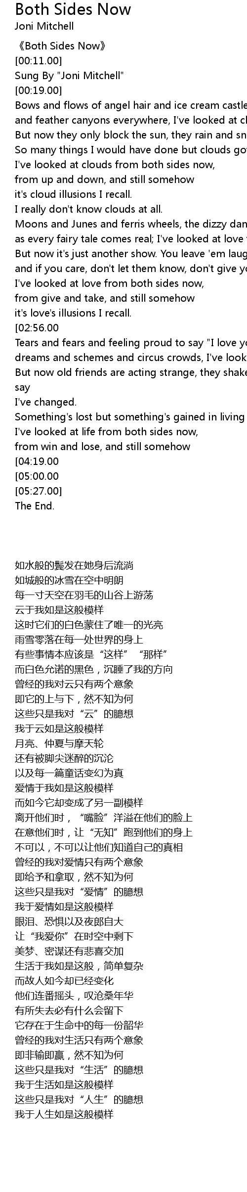| [00:00.00] | 《Both Sides Now》 |