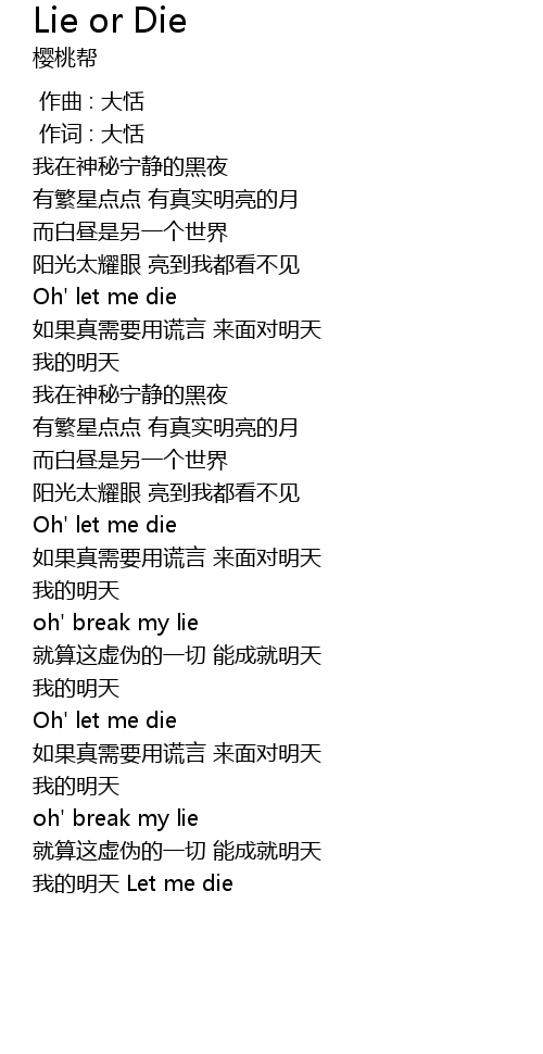 | [01:44.07] | Oh' let me die |