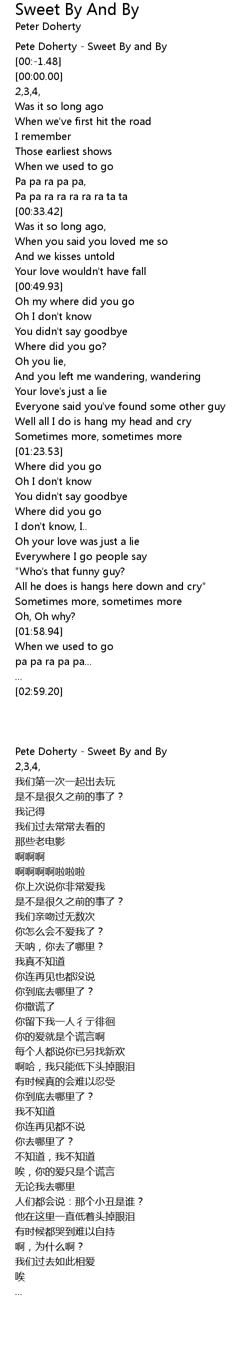 Pete Doherty - Sweet By and By |
