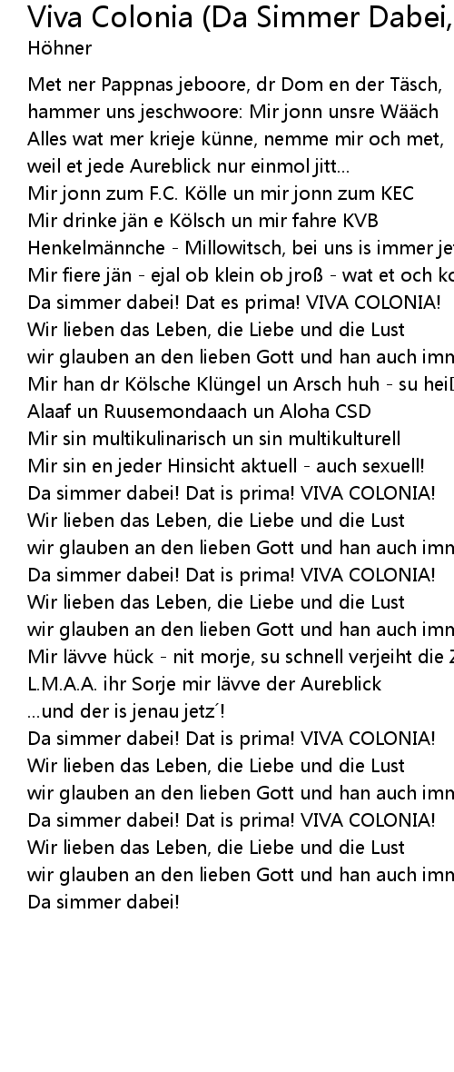 | Song | Viva Colonia (Da Simmer Dabei, Dat Is Prima!) |