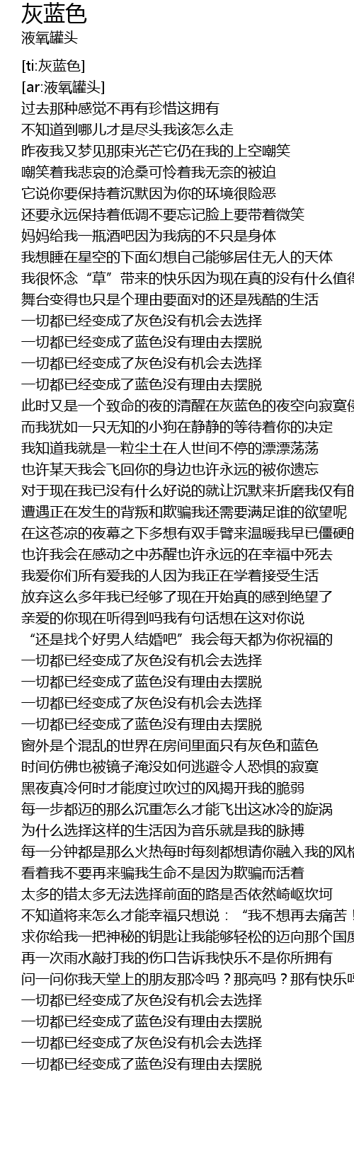| [03:22.614] | 一切都已经变成了蓝色没有理由去摆脱 |