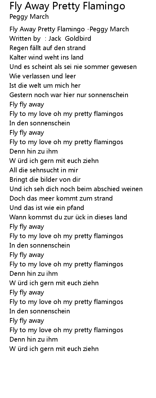| [00:00.00] | Fly Away Pretty Flamingo Peggy March |
