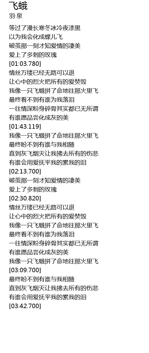 | [01:43.800] | 我像一只飞蛾拼了命地往那火里飞 |