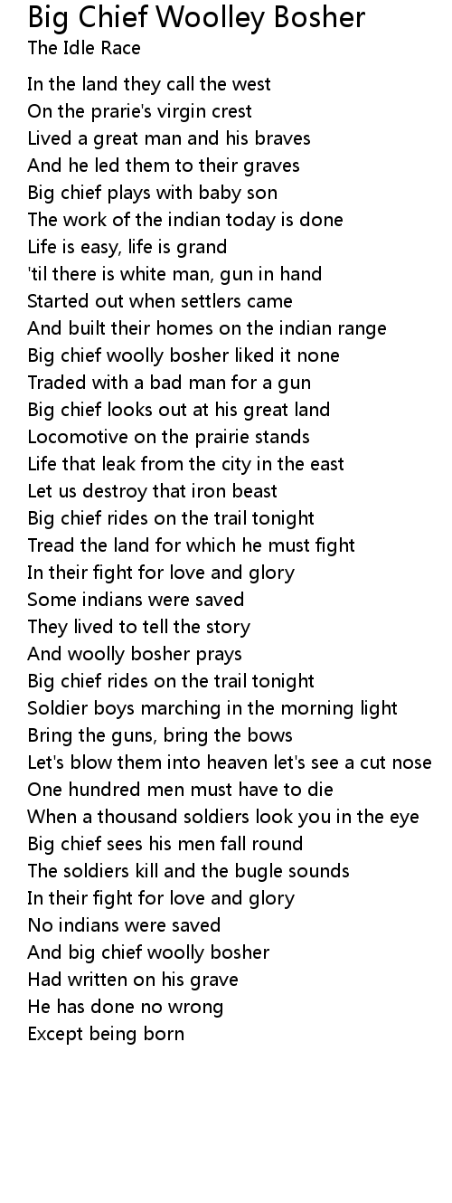 Big chief woolly bosher liked it none |
