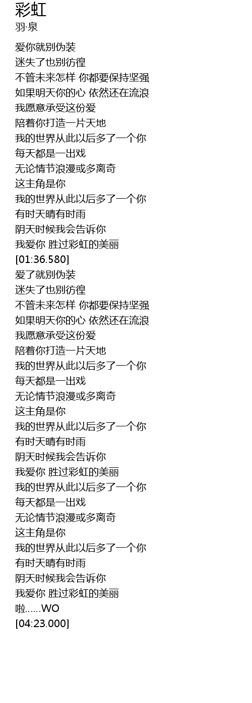 | [03:22.500] | 我爱你 胜过彩虹的美丽 |