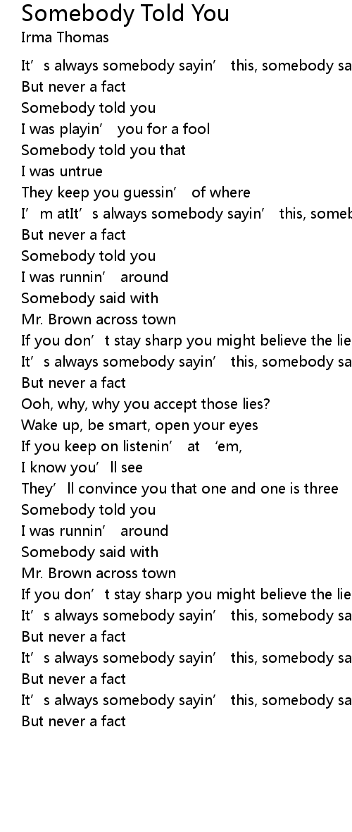 | It' s always somebody sayin' this, somebody sayin' that | |