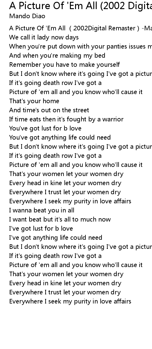 | [00:00.00] | A Picture Of ' Em All 2002Digital Remaster Mando Diao |