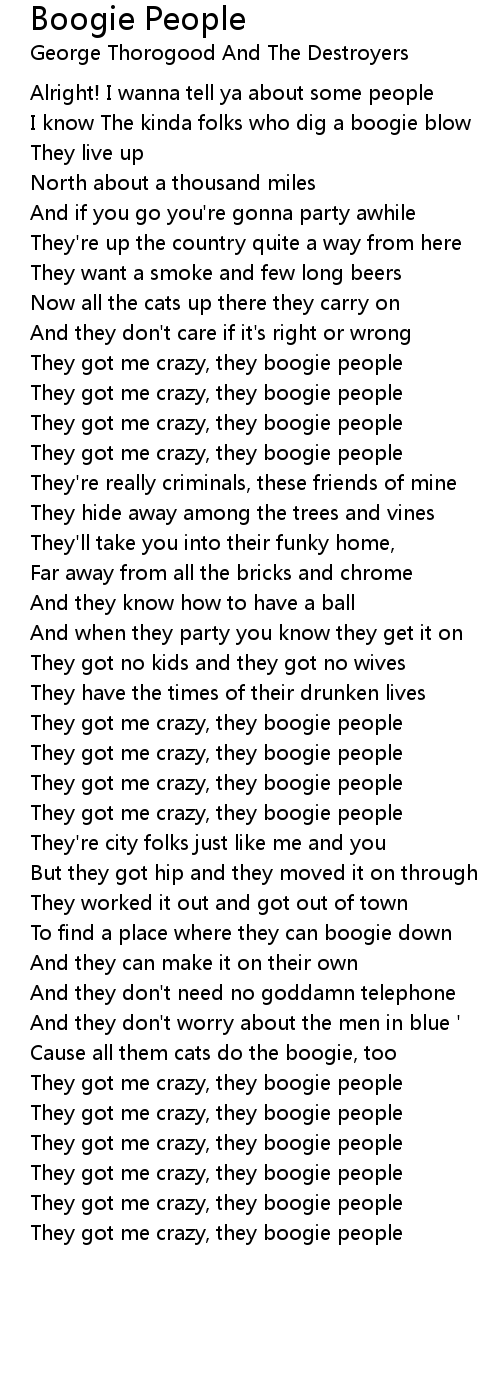 They got me crazy, they boogie people |