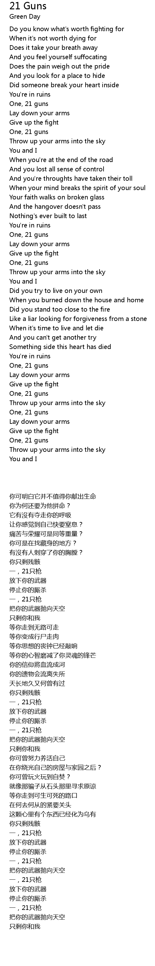 One, 21 guns |
