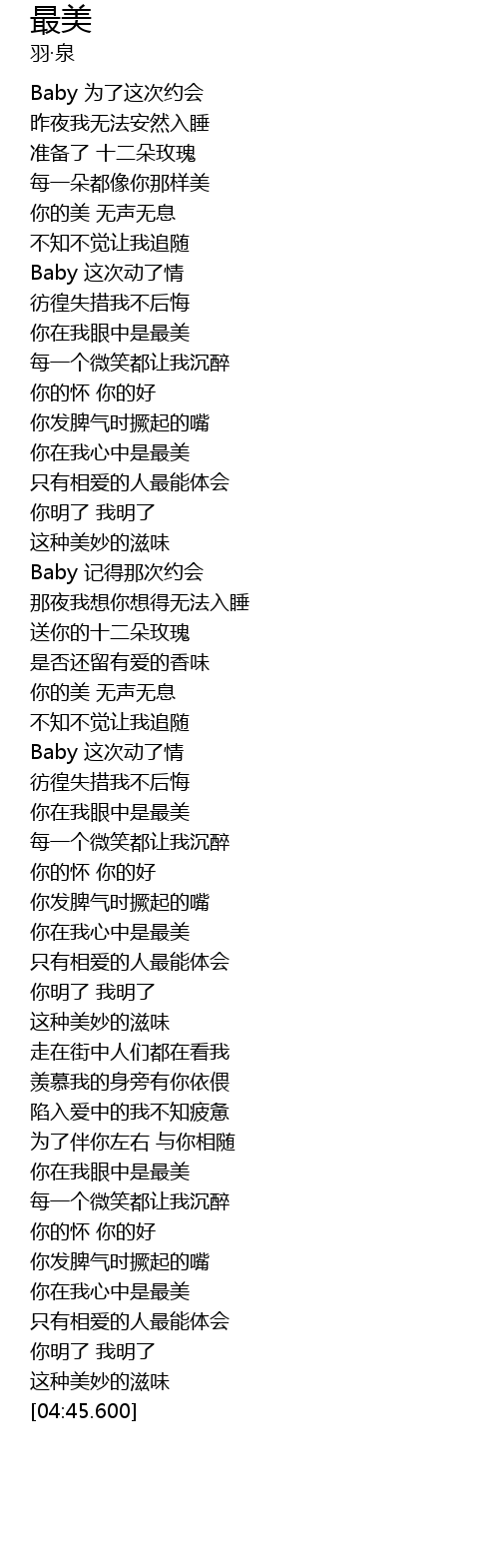 | [04:24.600] | ni zai wo xin zhong shi zui mei |
