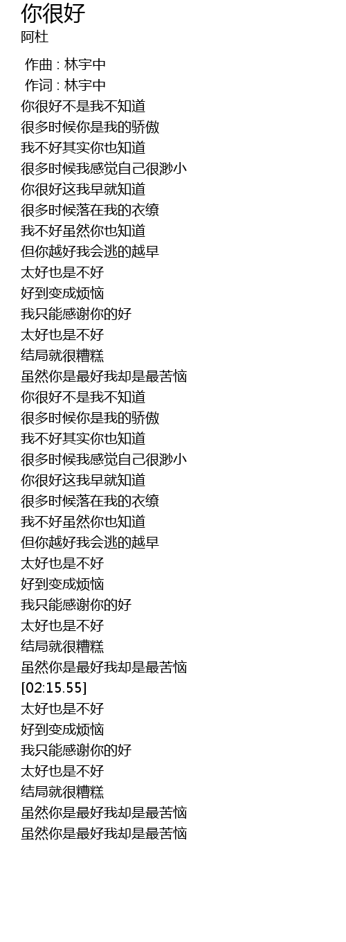 | [02:54.16] | tài hǎo yě shì bù hǎo |