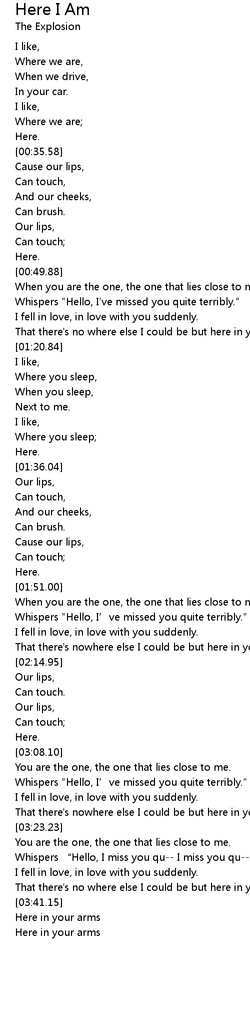 | [03:19.57] | That there's nowhere else I could be but here in your arms. |