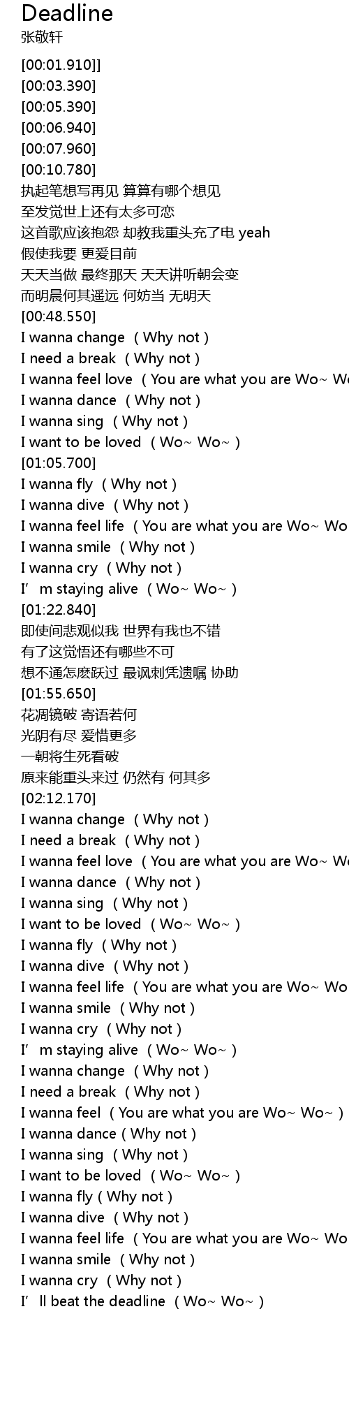 | [03:16.750] | I' ll beat the deadline Wo Wo |