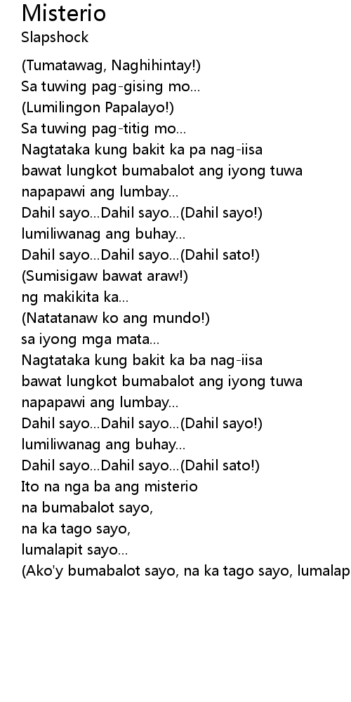 | (Ako'y bumabalot sayo, na ka tago sayo, lumalapit sayo...) |
