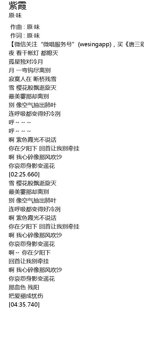 | [01:56.810] | 啊 紫色霞光不说话 |