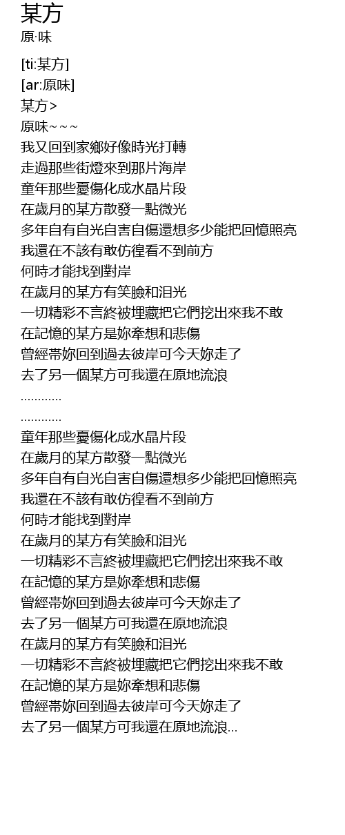 | [05:13.36] | 去了另一個某方可我還在原地流浪... |