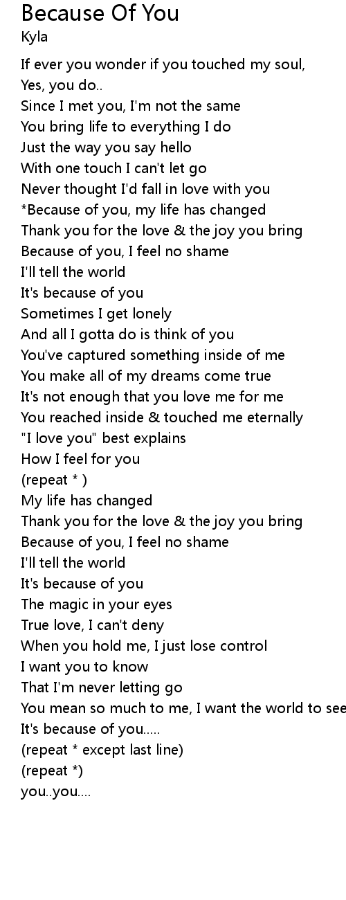 *Because of you, my life has changed |