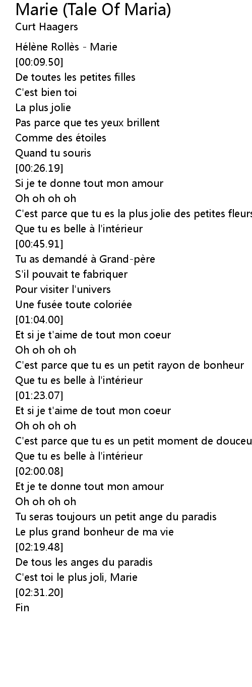 | [02:27.62] | C' est toi le plus joli, Marie |