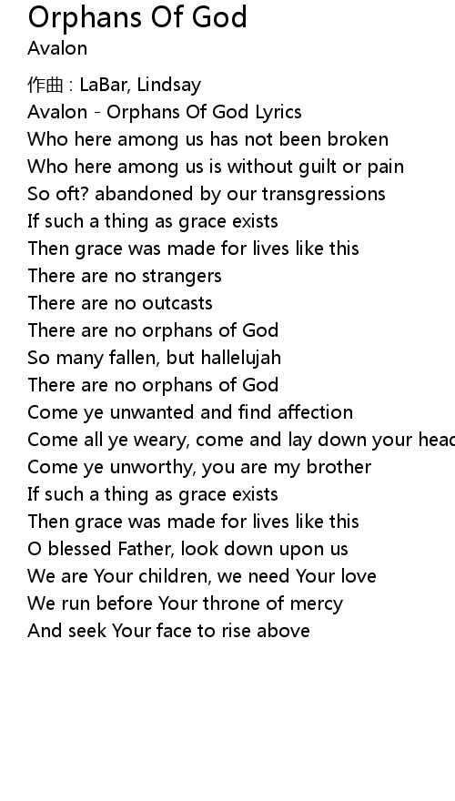 | Avalon Orphans Of God Lyrics | |