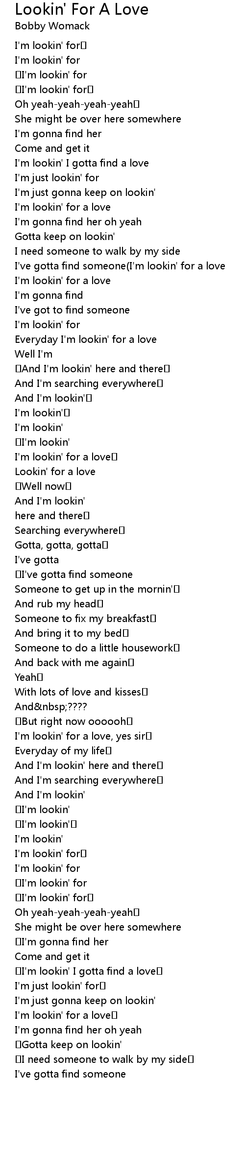 | Lookin' for a love | |