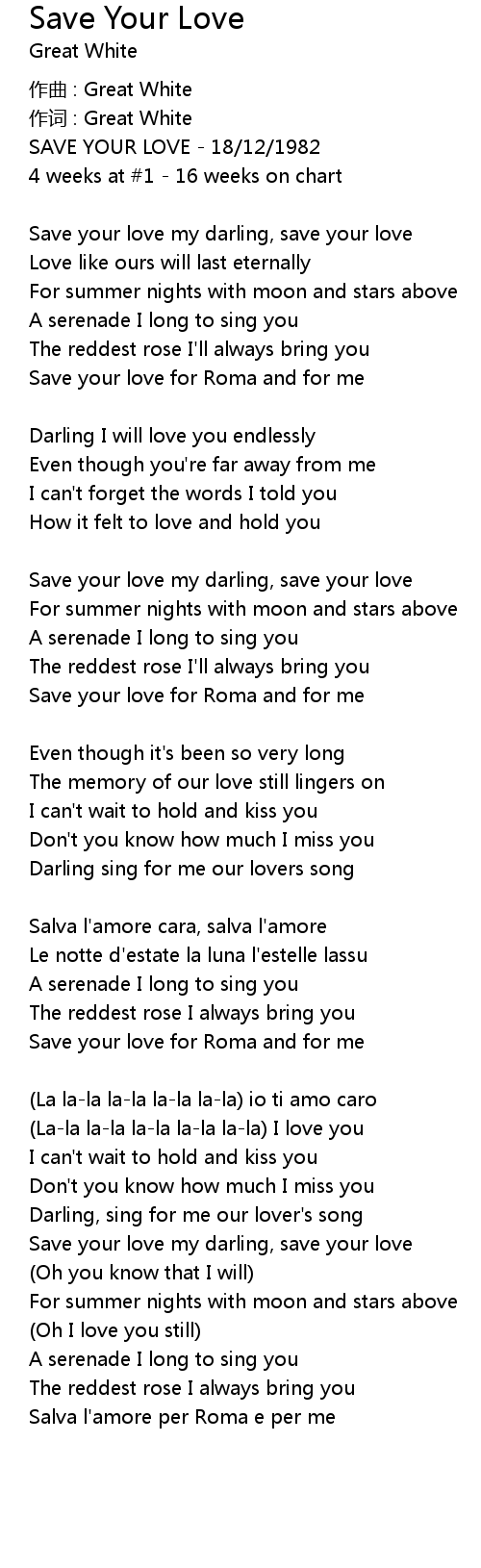 | Save your love my darling, save your love | |