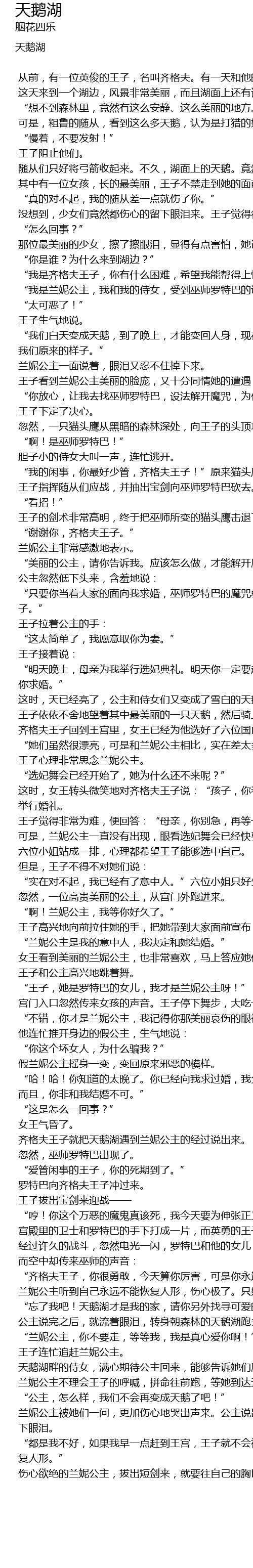 | 公主说完之后,就流着眼泪,转身朝森林的天鹅湖跑去。 | |