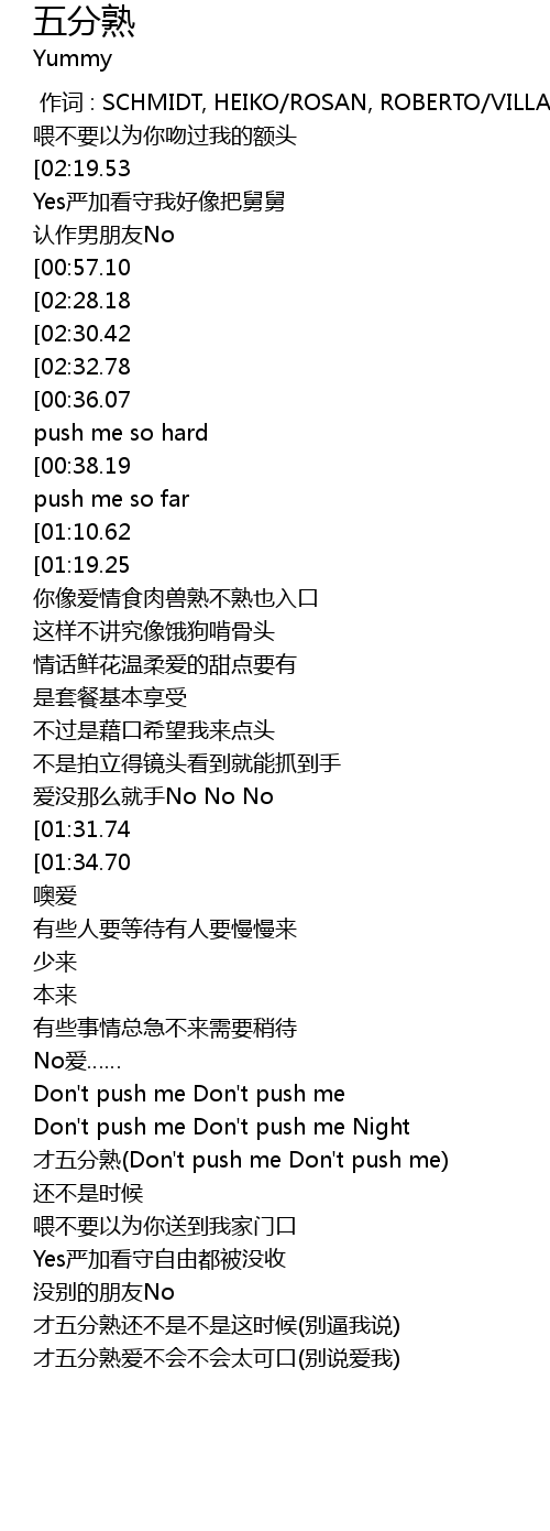 | [02:05.08] | 才五分熟(Don't push me Don't push me) |