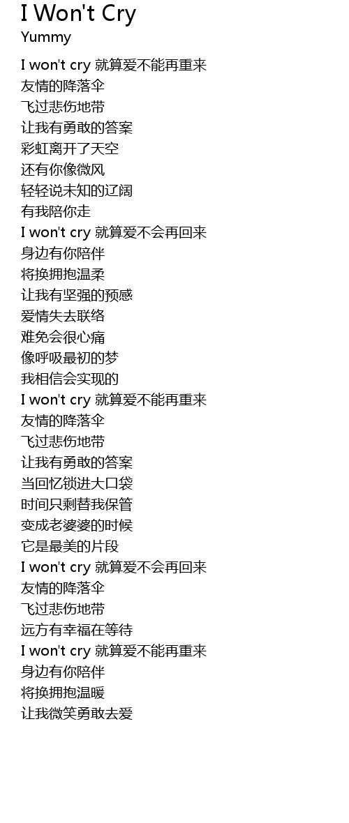 | [00:09.620] | I won't cry 就算爱不能再重来 |