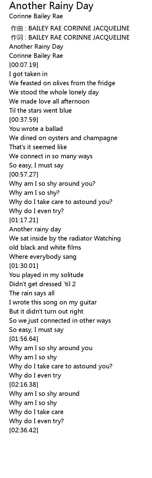 | [00:02.63] | Another Rainy Day |