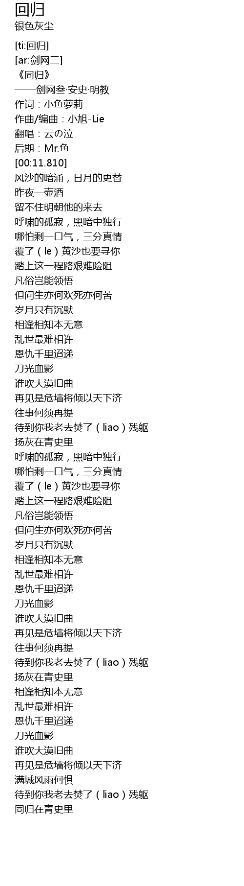 | [00:53.625] | 覆了(le)黄沙也要寻你 |