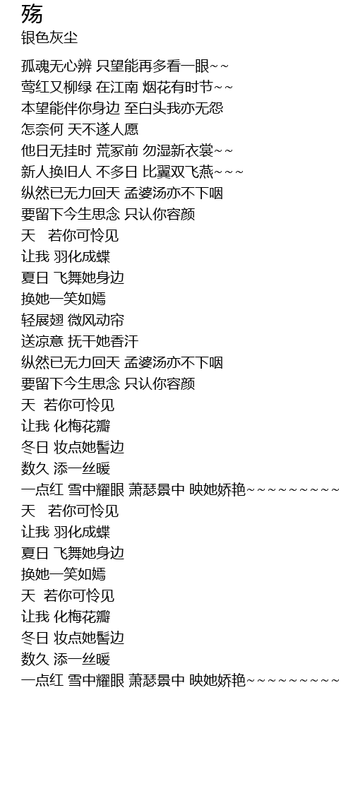 | [00:33.70] | gū hún wú xīn biàn zhǐ wàng néng zài duō kàn yī yǎn |