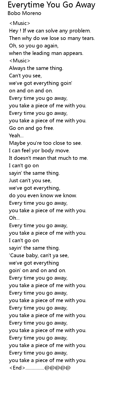 Every time you go away, |