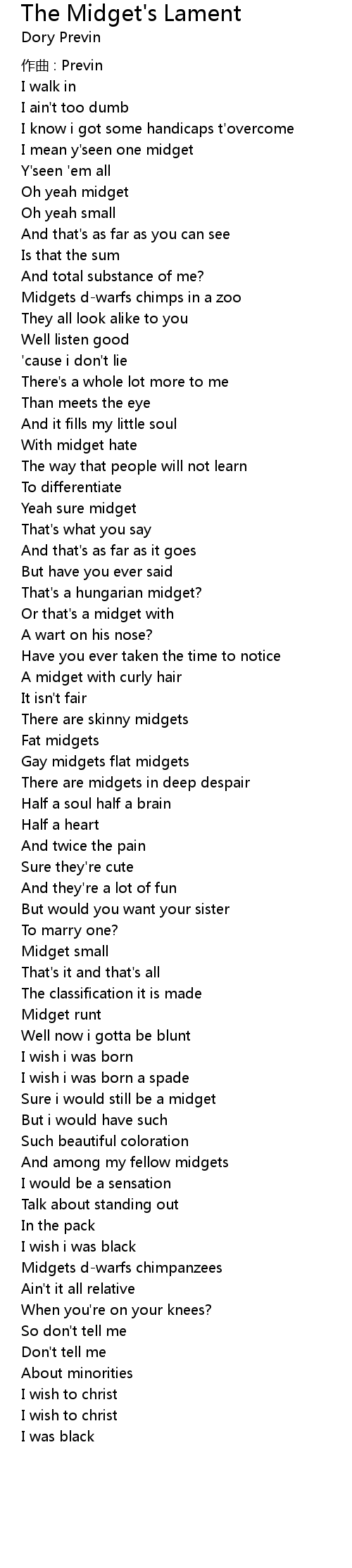 | Song | The Midget's Lament |